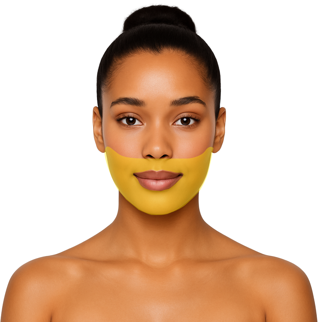 The half face covers from sideburn to sideburn across the upper lip down to the jawbone. It does not include beneath the jaw. Sessions take about 15 to 20 minutes to complete.